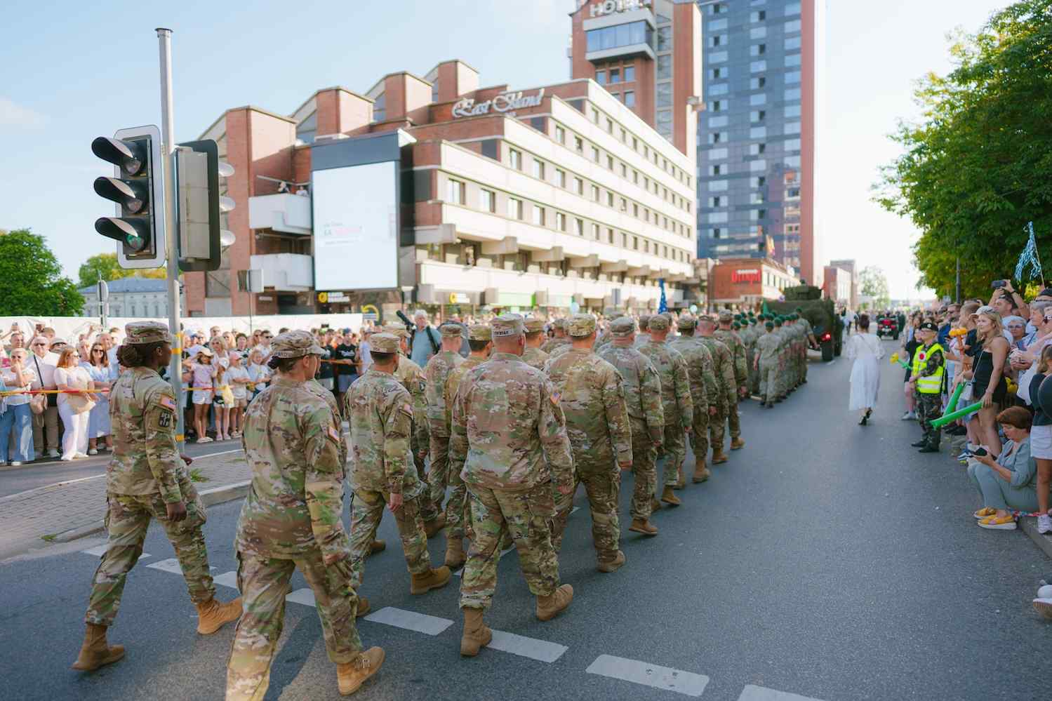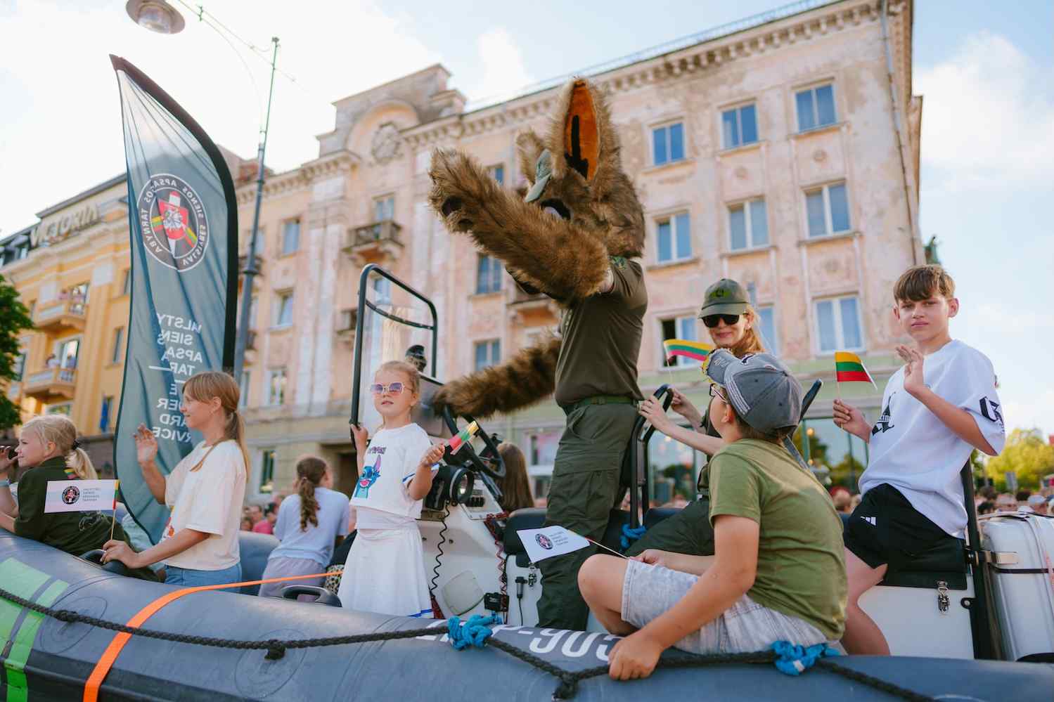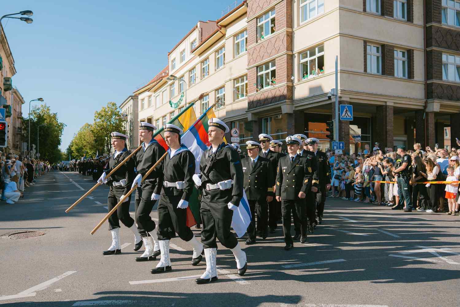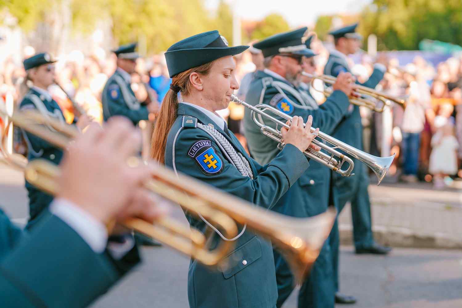Lietuvos policija žengė kartu su orkestru ir tarnybiniais šunimis – užtikrindami saugumą ne tik šventės metu, bet ir kasdienybėje. Kariuomenės daliniai – pėstininkų brigada „Žemaitija“, dragūnų batalionas ir KASP atstovai – žygiavo tvirtai, garbingai, drauge su sąjungininkais.