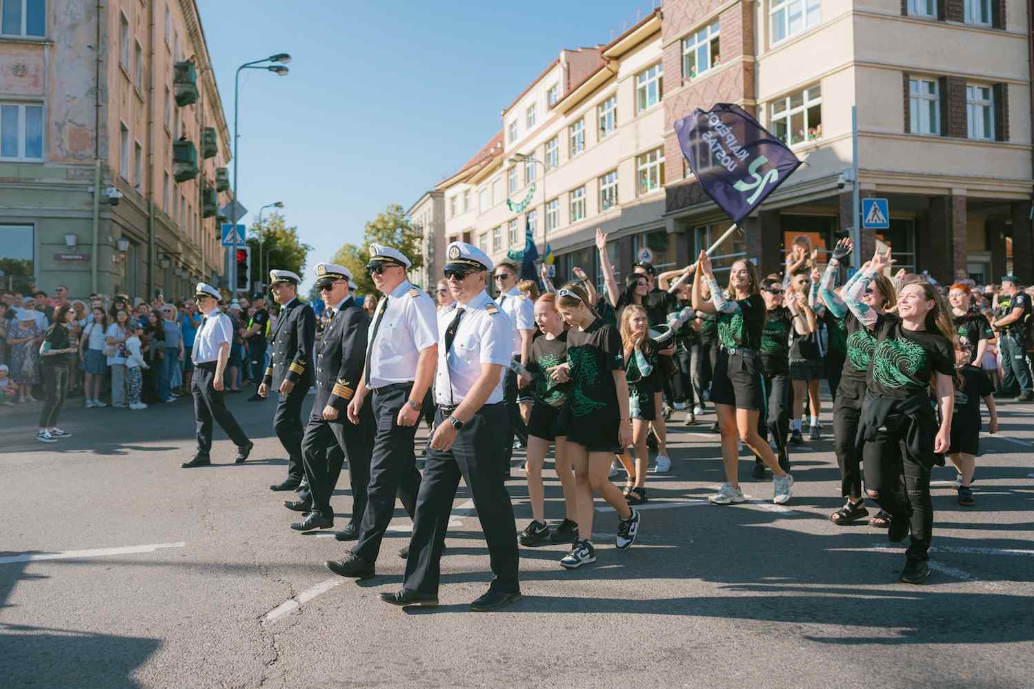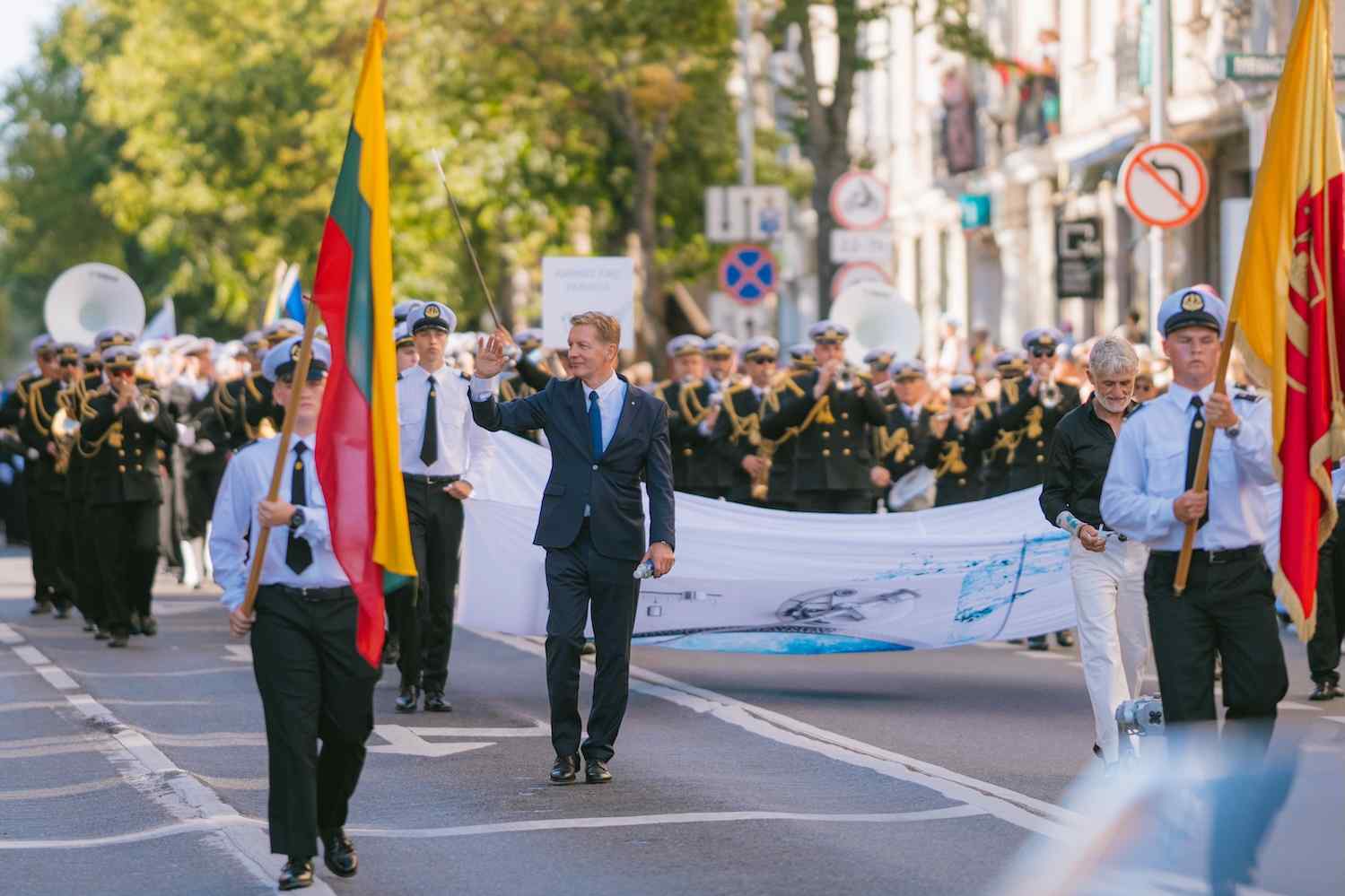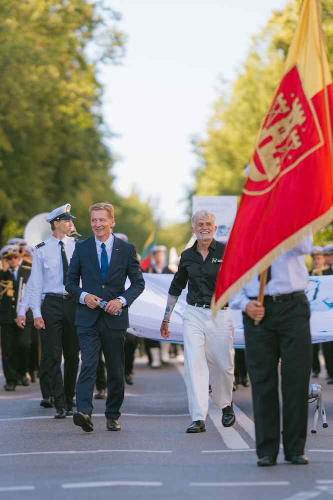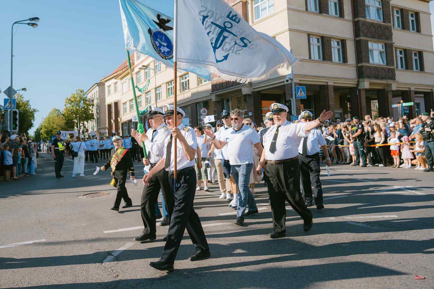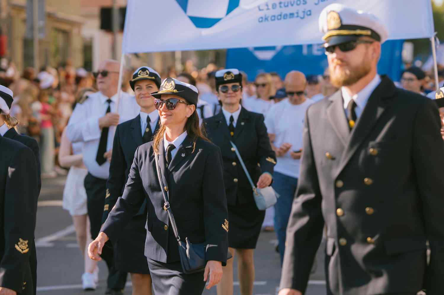 Eisenos priešakyje žengė Lietuvos karinių jūrų pajėgų orkestras, vadovaujamas Egidijaus Mikniaus, užtikrinęs pakilią nuotaiką nuo pirmosios akimirkos. Vilnius Tech Lietuvos jūreivystės akademijos studentai iškilmingai nešė Klaipėdos uosto, miesto ir Lietuvos vėliavas.