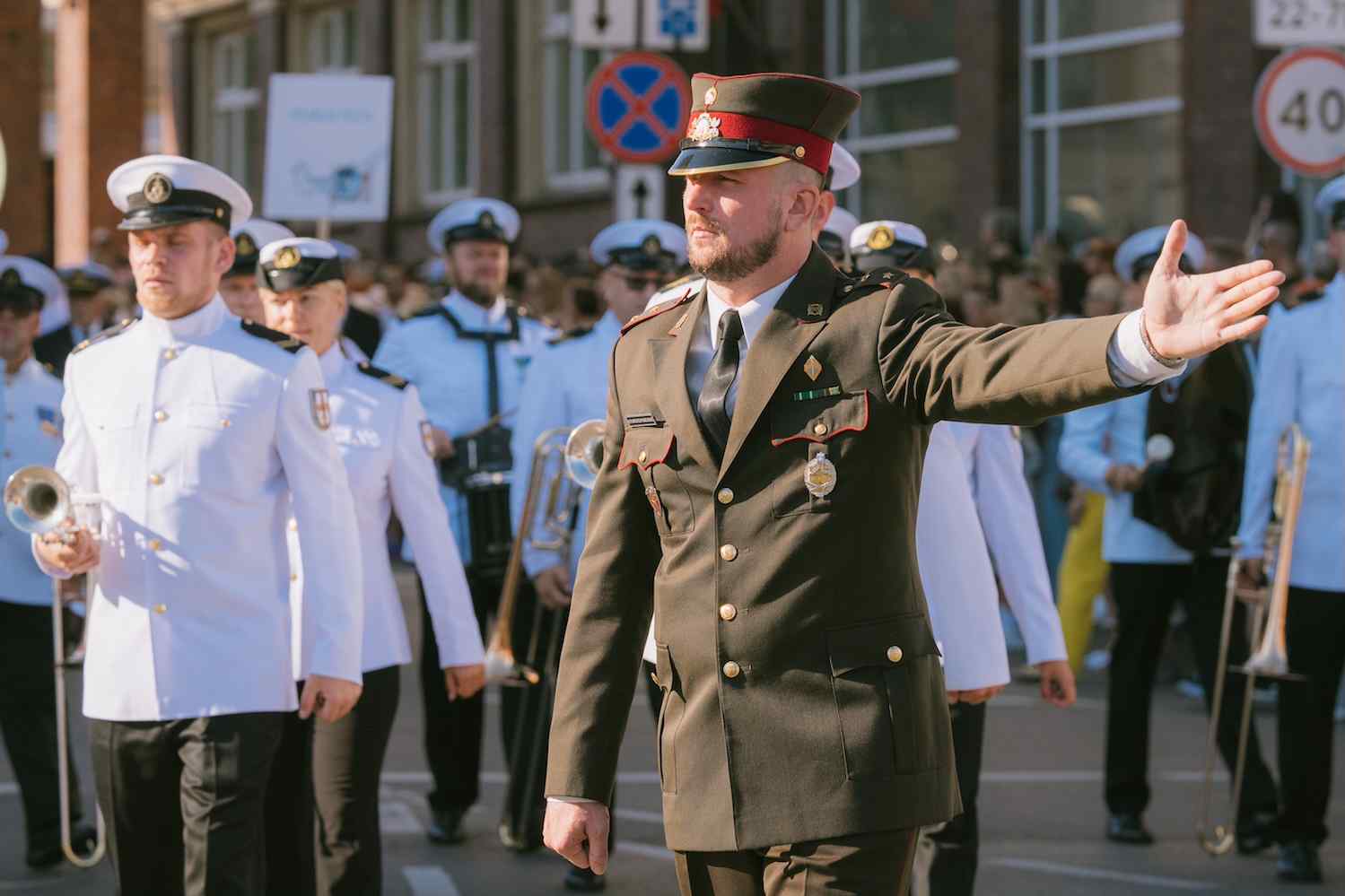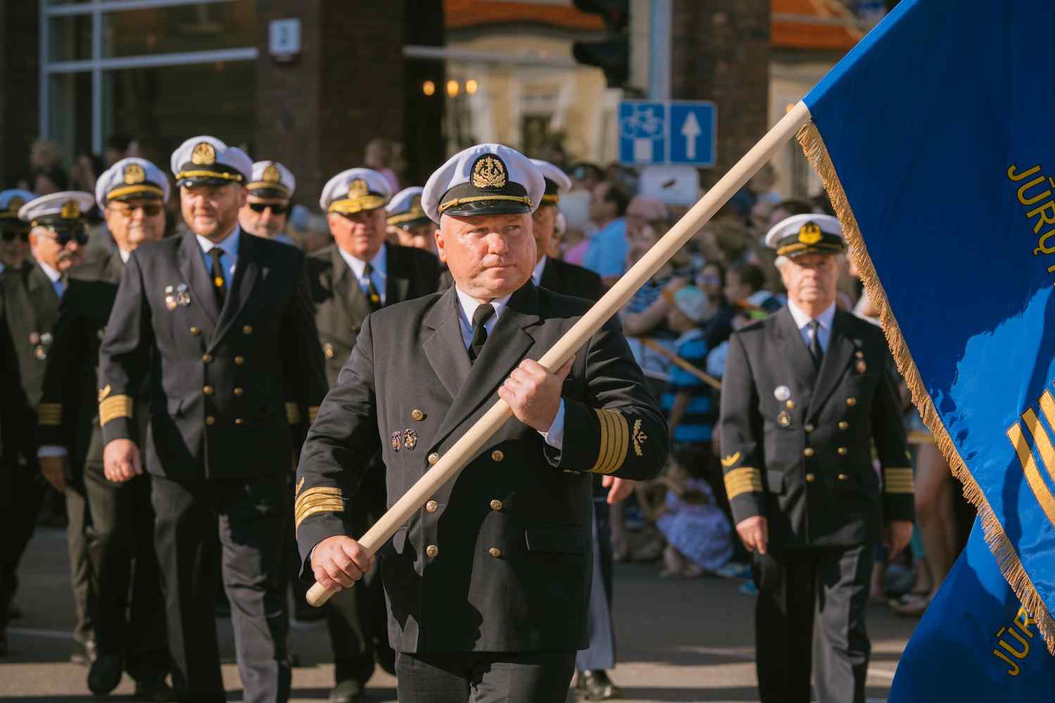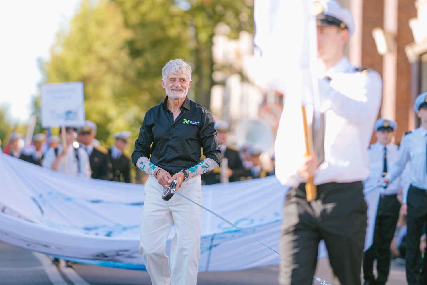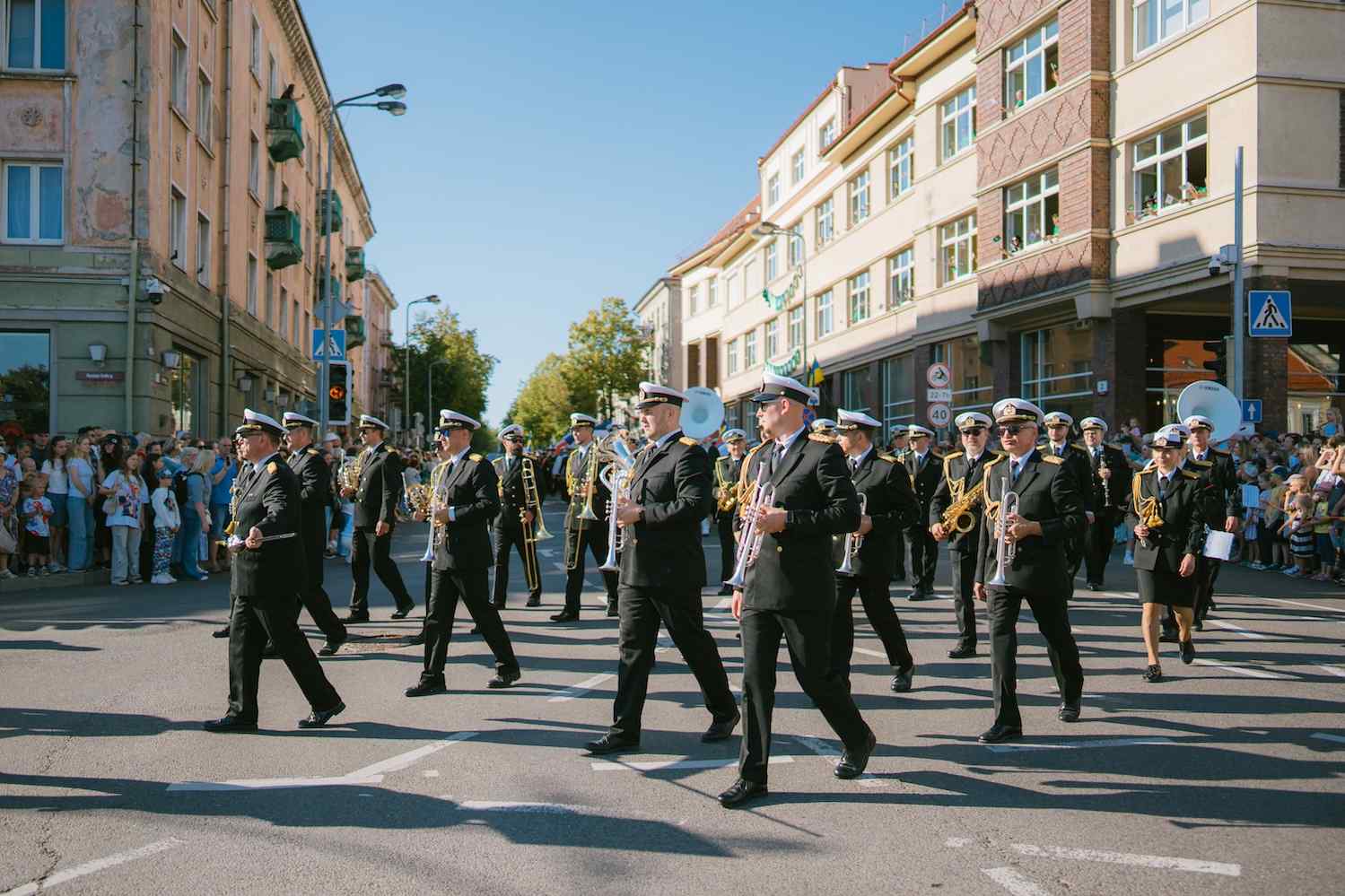 Eisenos priešakyje žengė Lietuvos karinių jūrų pajėgų orkestras, vadovaujamas Egidijaus Mikniaus, užtikrinęs pakilią nuotaiką nuo pirmosios akimirkos. Vilnius Tech Lietuvos jūreivystės akademijos studentai iškilmingai nešė Klaipėdos uosto, miesto ir Lietuvos vėliavas.