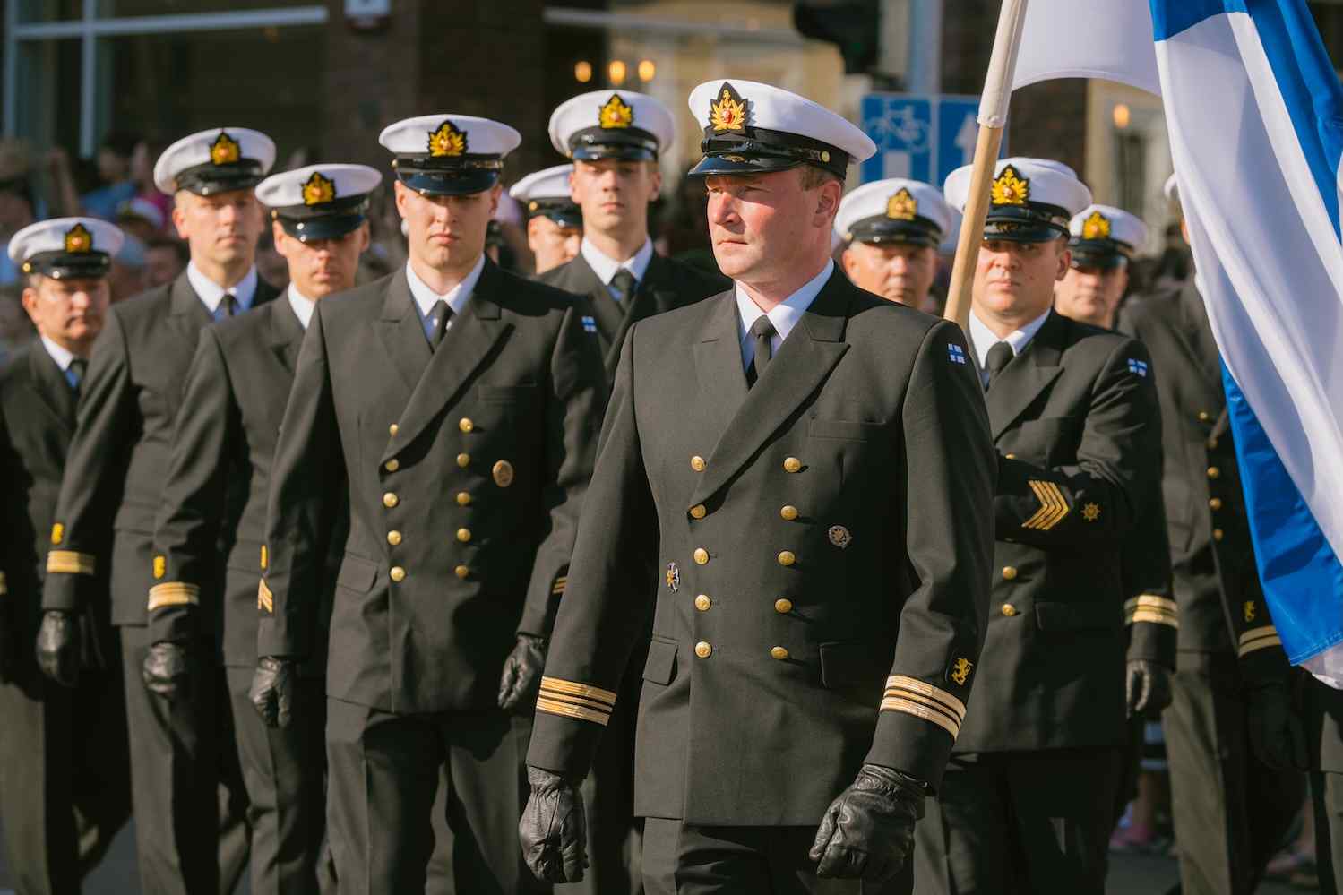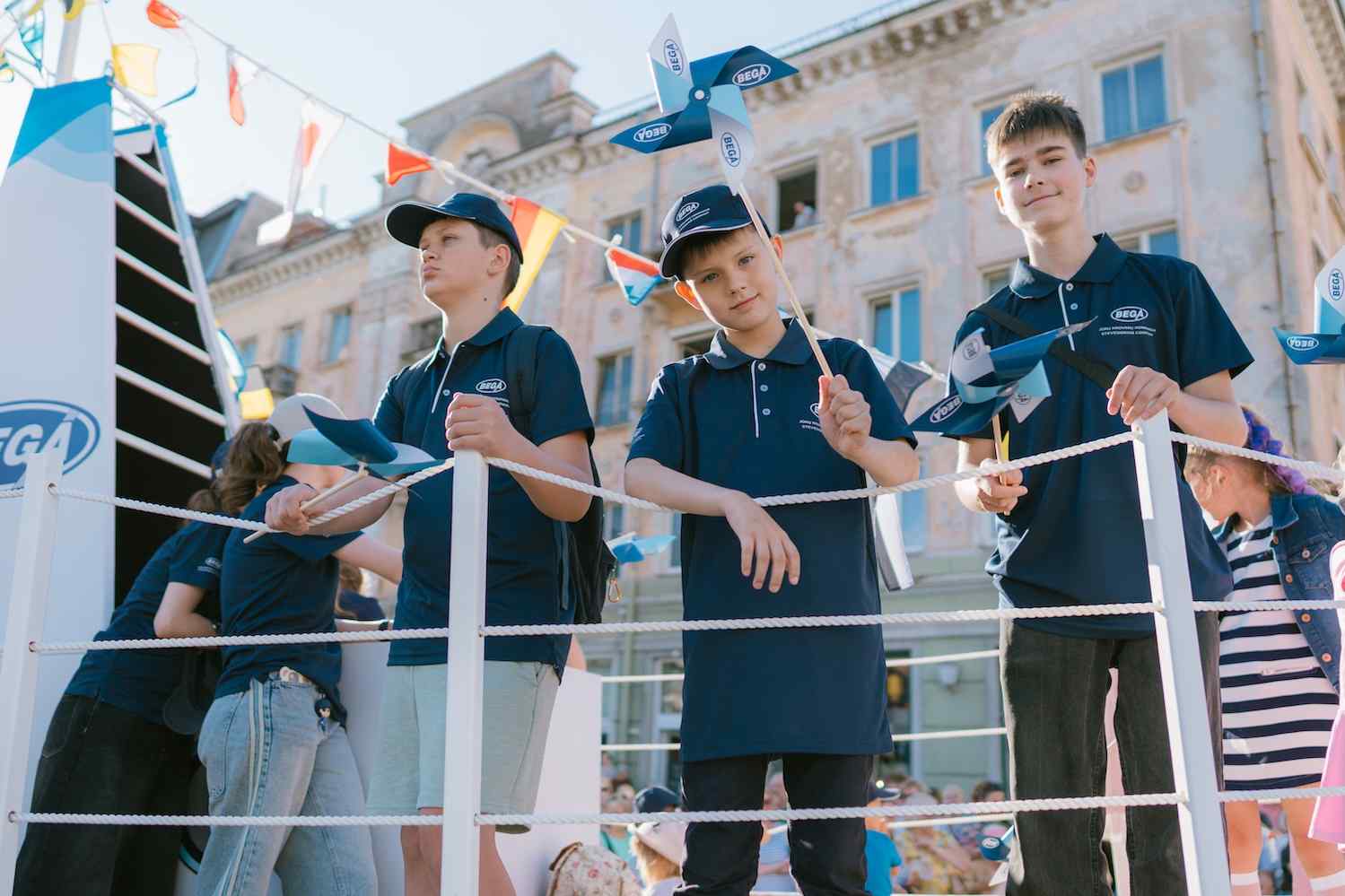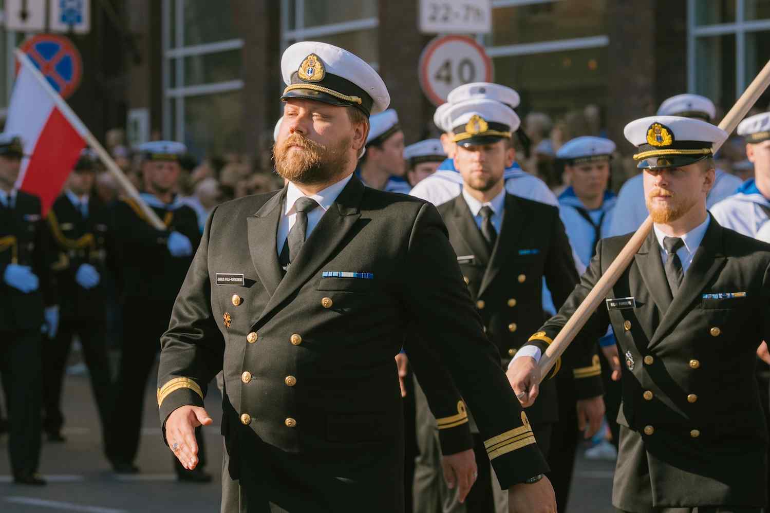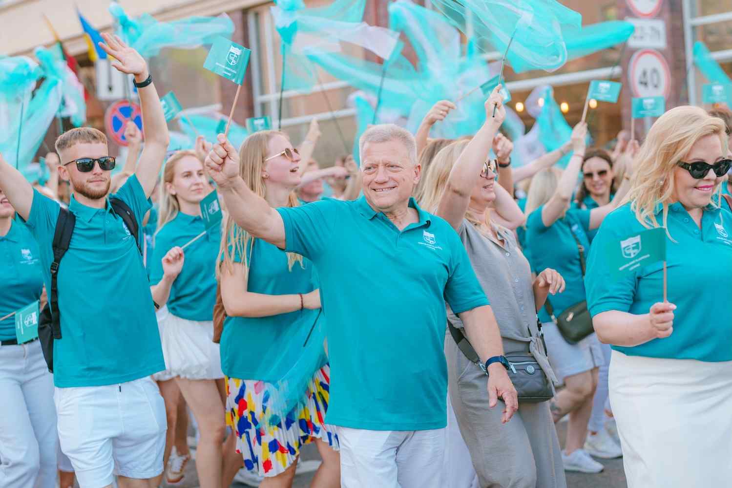 Eisenos priešakyje žengė Lietuvos karinių jūrų pajėgų orkestras, vadovaujamas Egidijaus Mikniaus, užtikrinęs pakilią nuotaiką nuo pirmosios akimirkos. Vilnius Tech Lietuvos jūreivystės akademijos studentai iškilmingai nešė Klaipėdos uosto, miesto ir Lietuvos vėliavas.