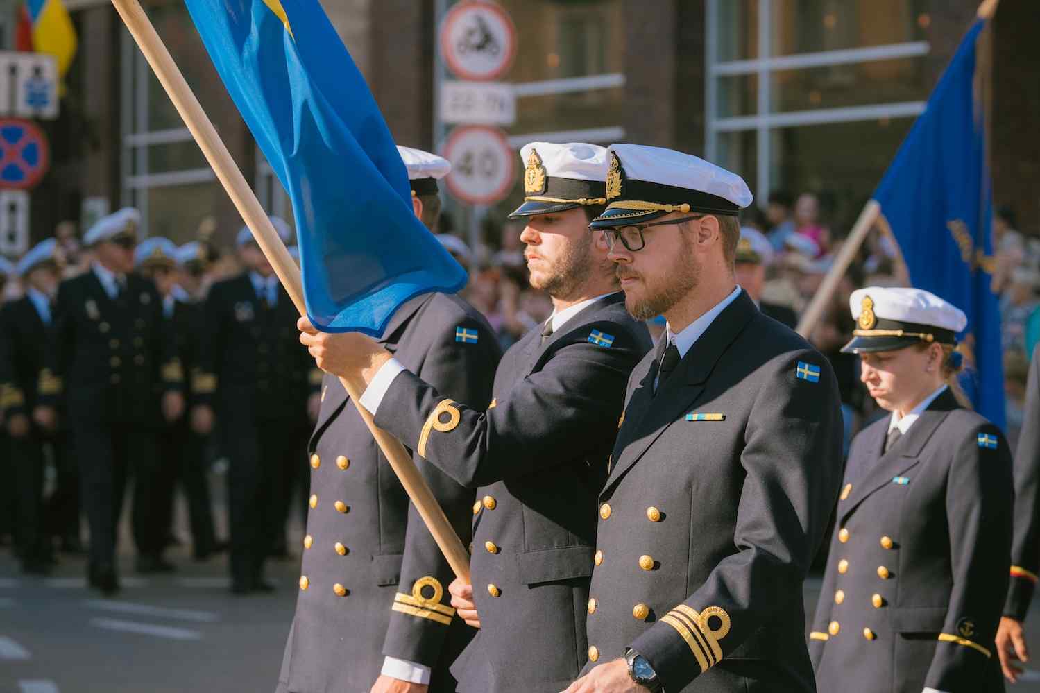 Orkestrą lydėjo Lietuvos karinių jūrų pajėgų būrys, kuriam vadovavo komandoras Gediminas Šimkevičius, taip pat – garbės svečiai: Estijos, Lenkijos, Suomijos ir Švedijos karinių laivų įgulos, dalyvavusios minint 90-ąsias Lietuvos karo laivyno metines.