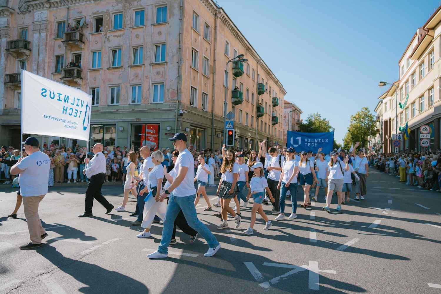Eiseną puošė ir gausi švietimo bendruomenė - Vilnius Tech kartu su Lietuvos jūreivystės akademija, šalia - Klaipėdos jūrų kadetų mokyklos auklėtiniai.