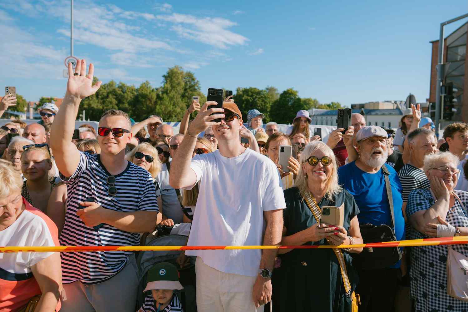 Ore aidint reaktyvinių variklių gausmui, iš tolo atsiliepė laivų tifonai, suskambo garbės varpas, o į viršų pakilo 66-osios Jūros šventės vėliava – tai buvo kulminacinė akimirka, pažymėjusi oficialią šventės pradžią.