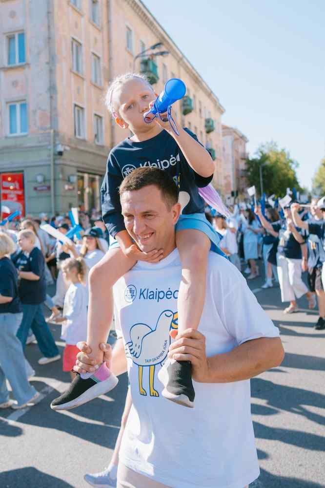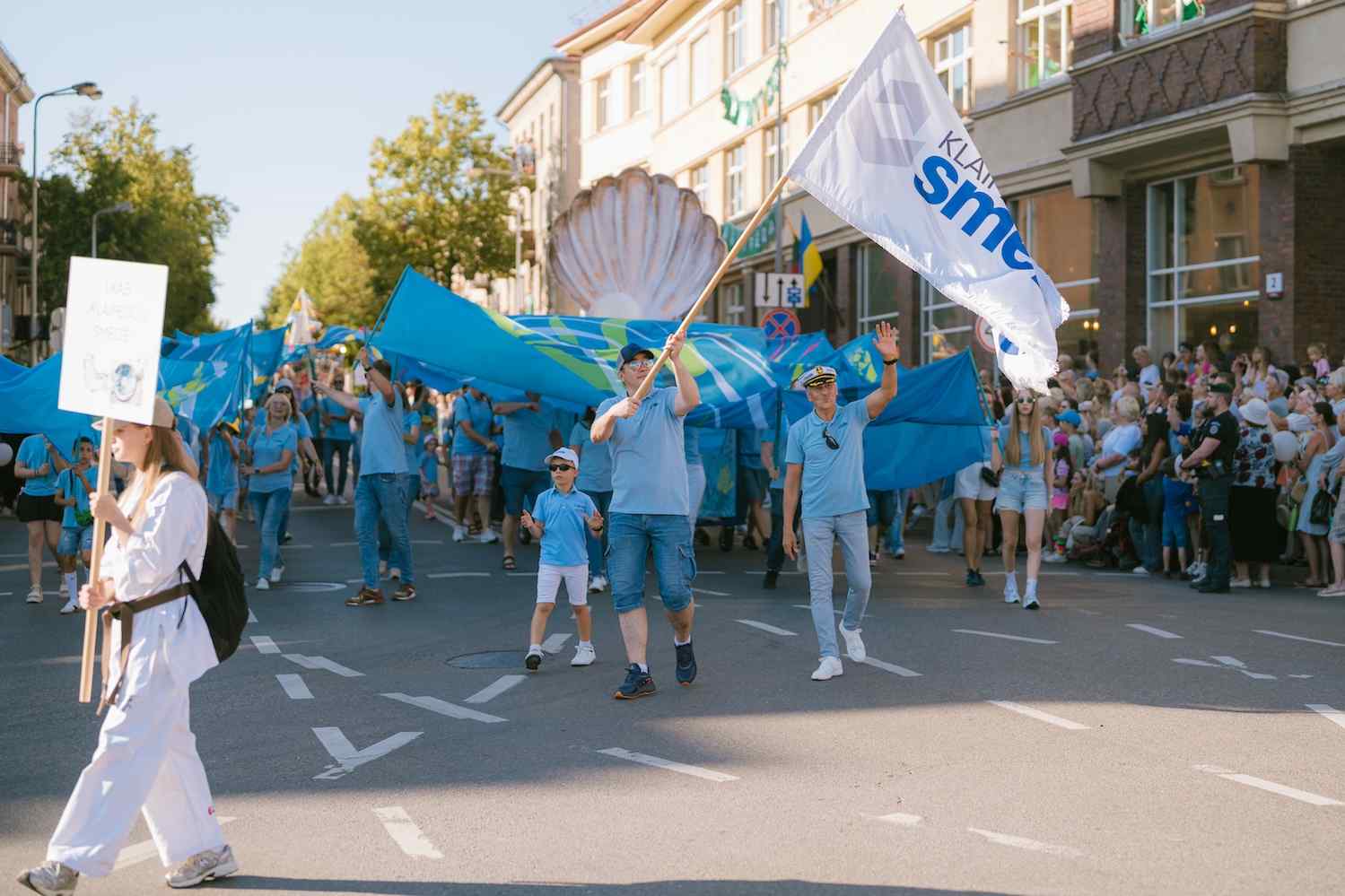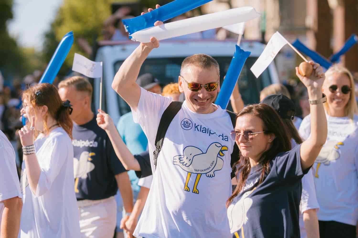 Su šūkiu „Klaipėda turi sirgalių, kurie myli miestą garsiai!“ miesto dvasia alsavo ir Klaipėdos savivaldybės komanda, į eiseną žengusi ne su dokumentų segtuvais, o su šypsenomis, skanduotėmis ir garsiu simboliu – „Kiru“, miesto balsu virš bangų.