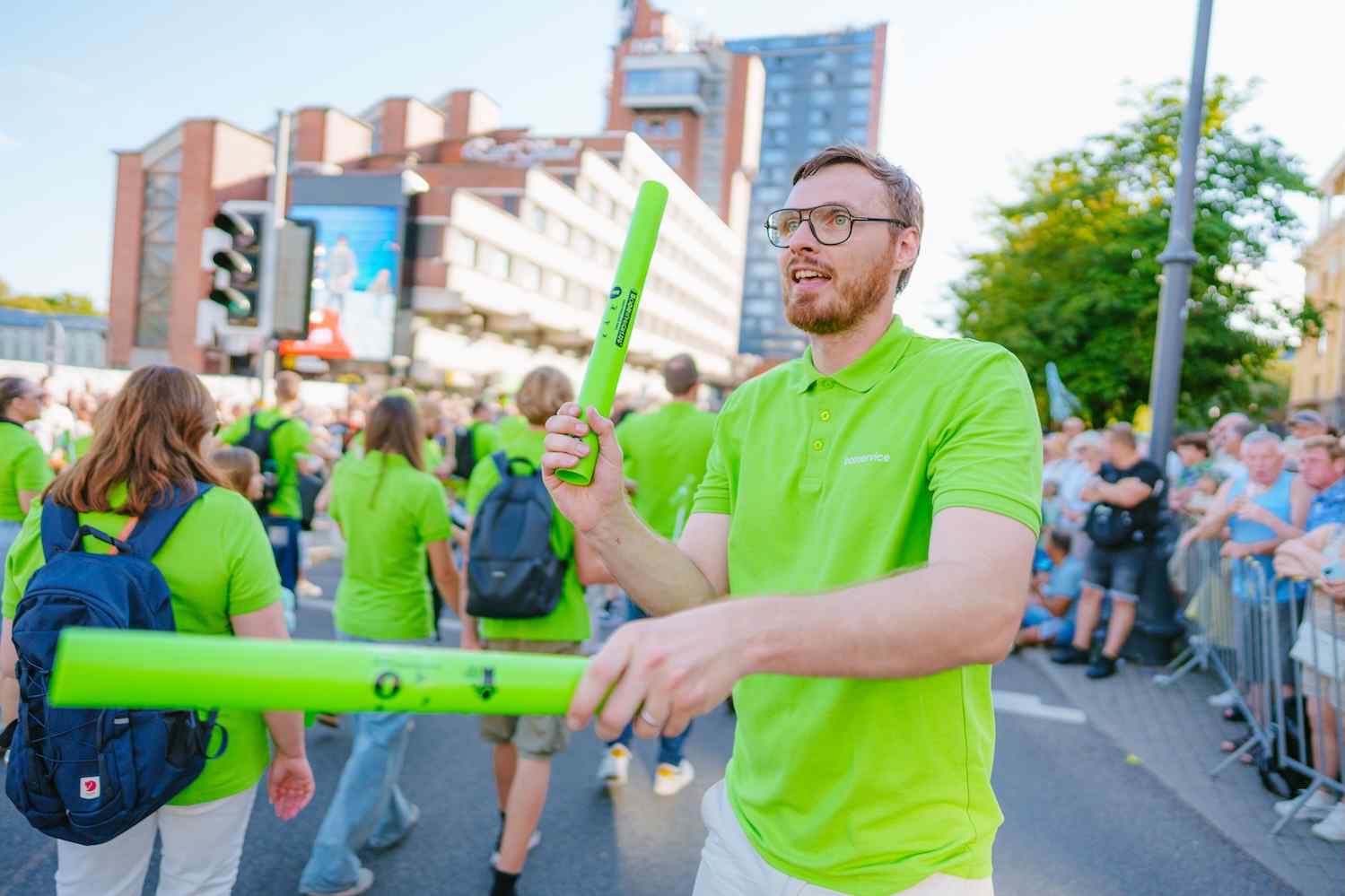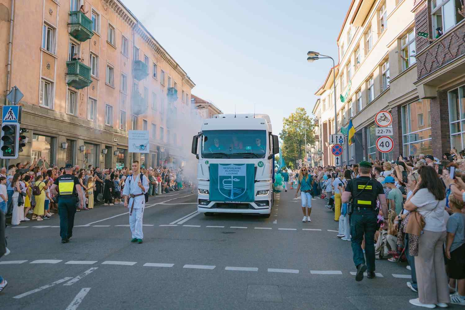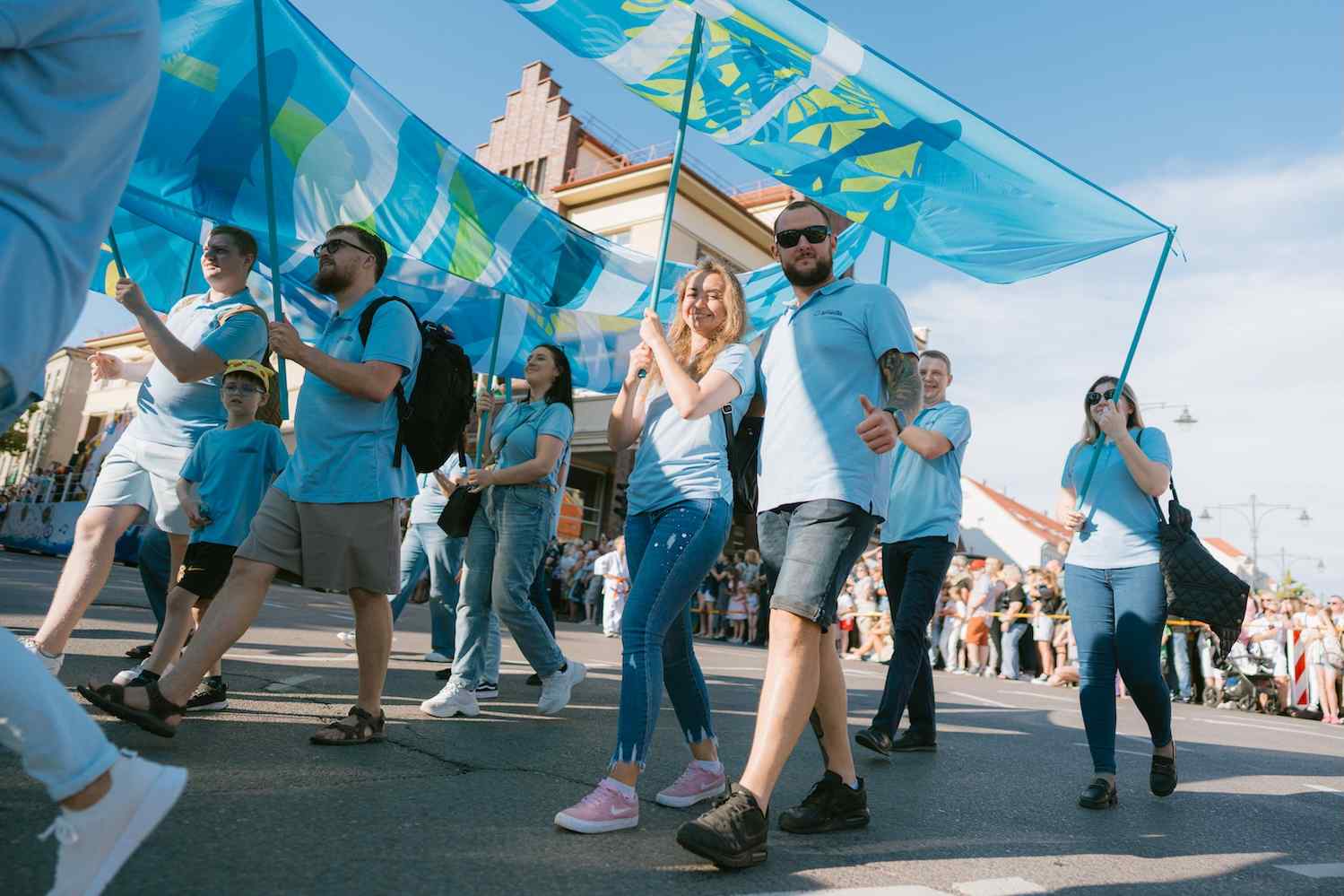 Su šūkiu „Klaipėda turi sirgalių, kurie myli miestą garsiai!“ miesto dvasia alsavo ir Klaipėdos savivaldybės komanda, į eiseną žengusi ne su dokumentų segtuvais, o su šypsenomis, skanduotėmis ir garsiu simboliu – „Kiru“, miesto balsu virš bangų.