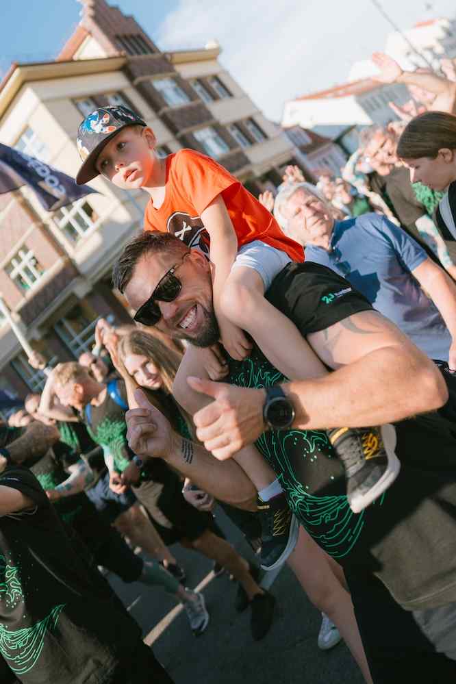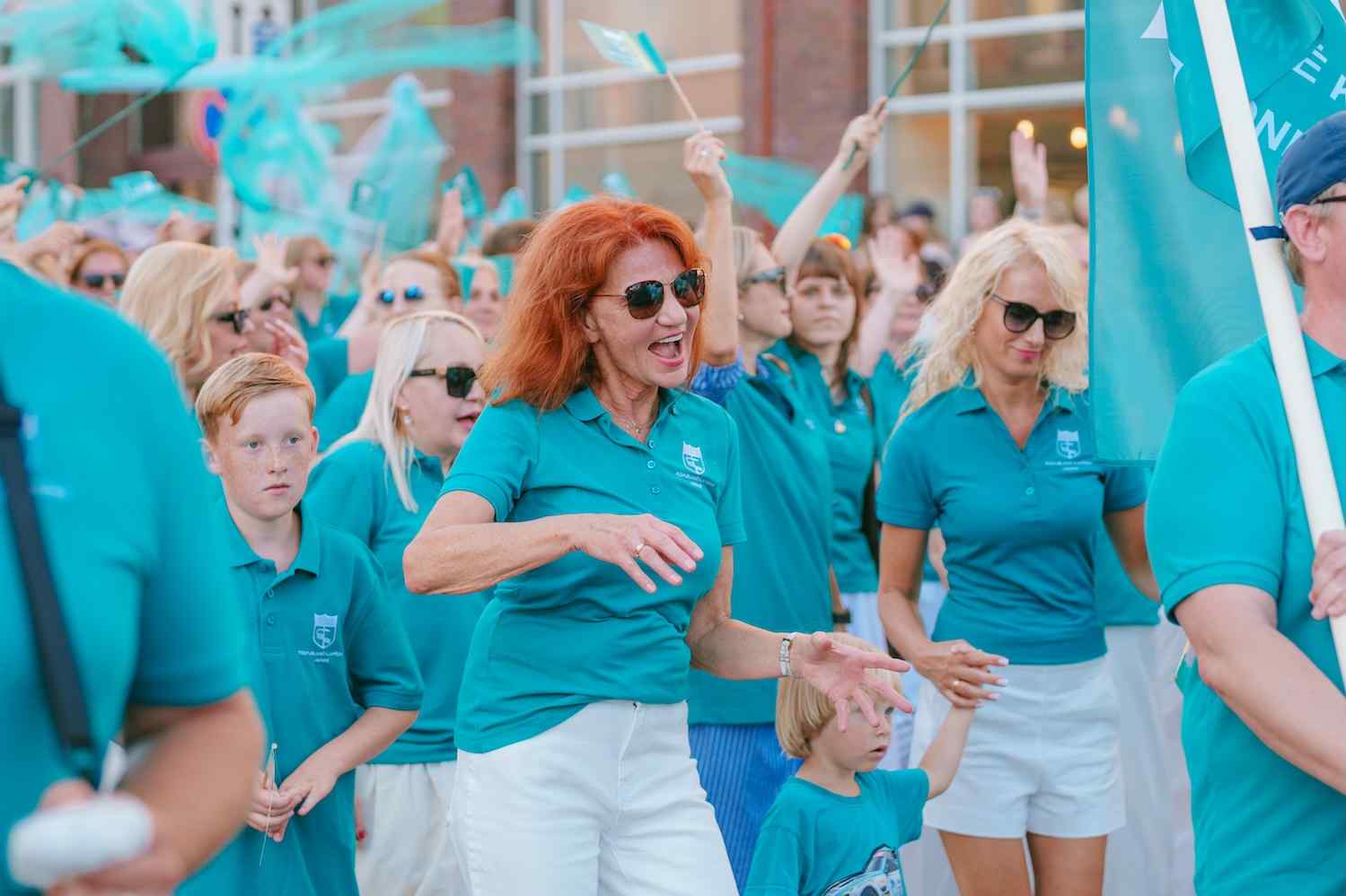 Eiseną iš paukščio skrydžio stebėjo ir iš viršaus sveikino radijo stoties „Laluna“ parasparnis, o pirmieji žingsniai nuaidėjo garsiai – su būgnais, fanfaromis, skanduotėmis ir jūrinės bendruomenės šūksniais.