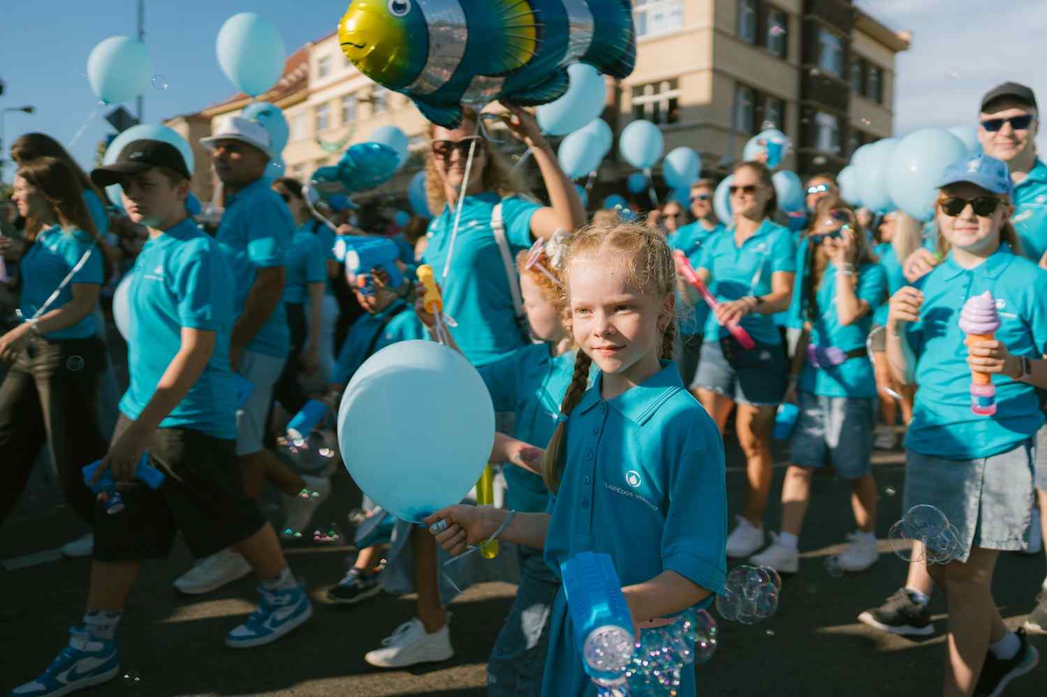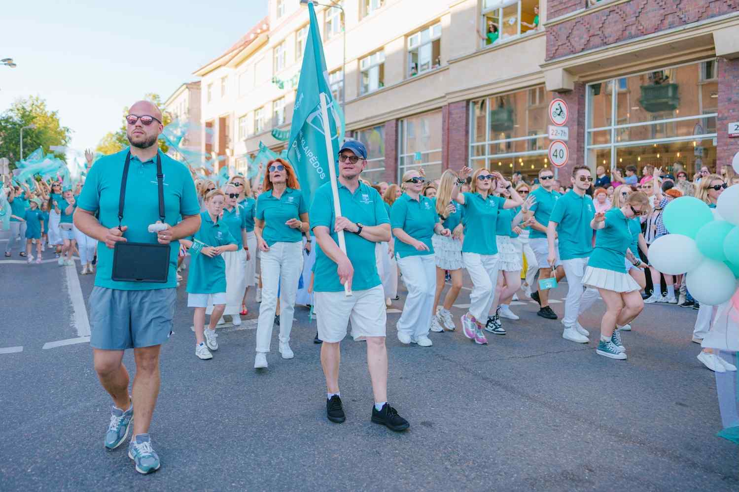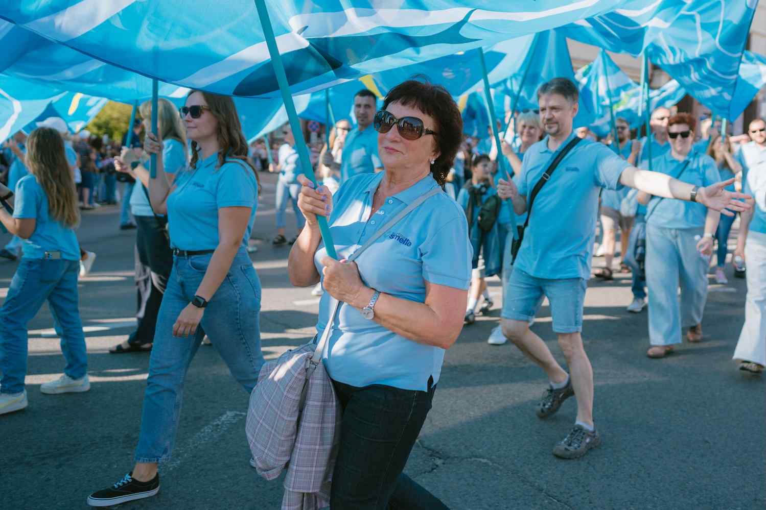 Klaipėdos Pauliaus Lindenau mokymo centras eiseną papuošė geltonų skėčių jūra. Jūrišku ritmu ir gaiviomis bangomis sveikino ir LKAB „Klaipėdos Smeltė“.