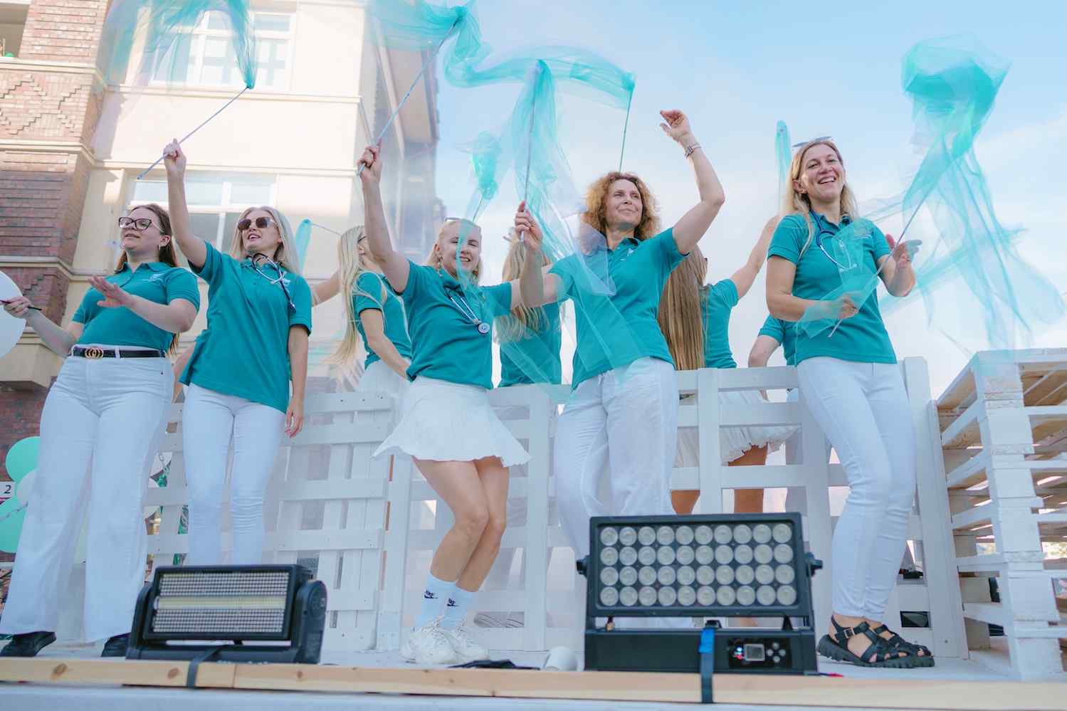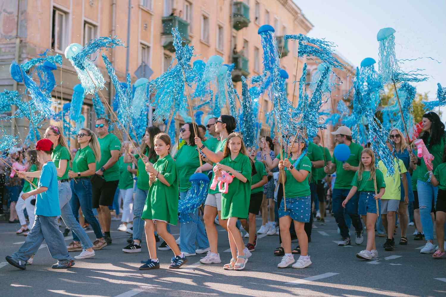 Blizgantys ir povandeninio pasaulio įkvėpti žygiavo ir „Klaipėdos baldai“, kurių kolektyvas tapo medūzų ir aštuonkojų būriu.