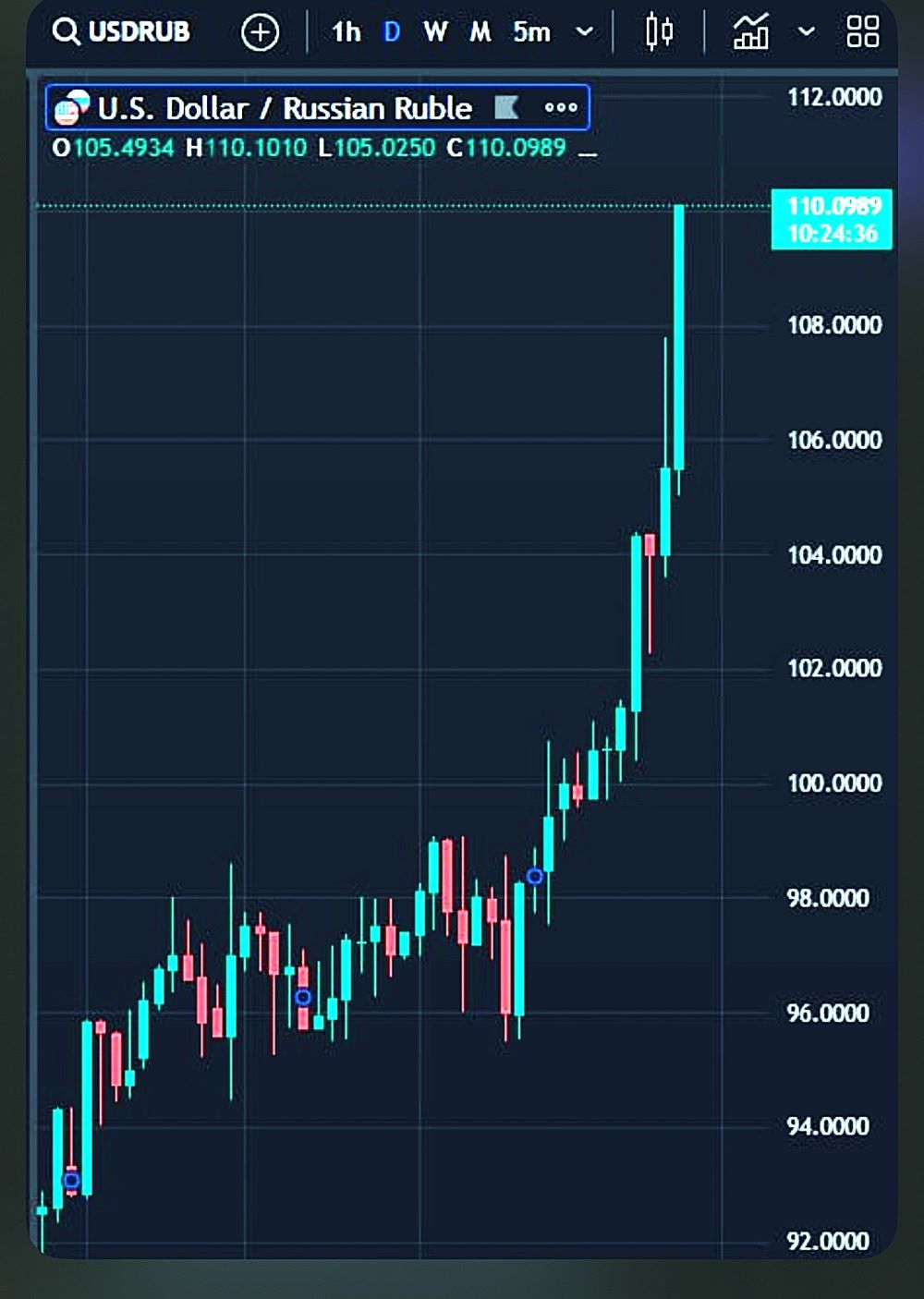 Аналитики компании БКС также объясняют «отвесное падение рубля» нарушением механизма оплаты экспорта и импорта из-за санкций, а также обострением геополитических рисков.