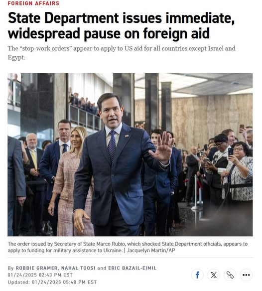 Tai yra platesnis nei prezidento Donaldo Trumpo naujausias vykdomasis įsakas, kuriuo departamentui nurodyta 90 dienų pristabdyti užsienio pagalbos dotacijas, kol sekretorius jas peržiūrės.