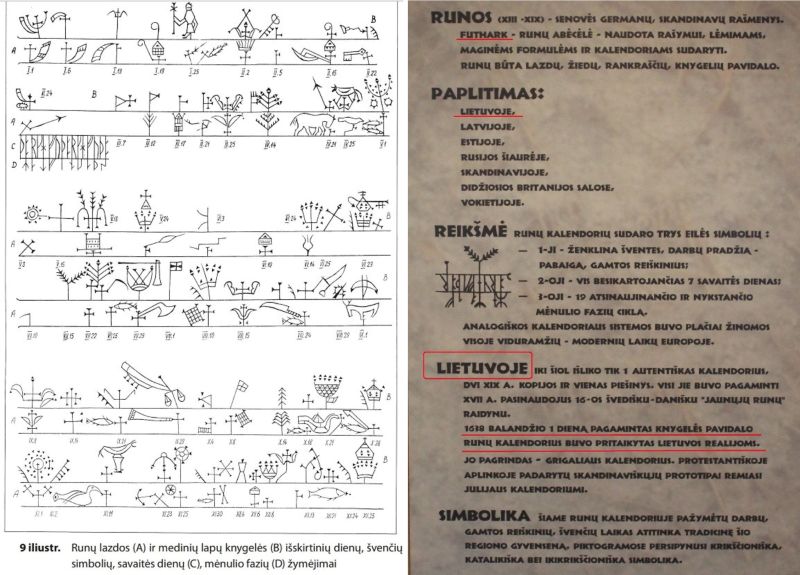 Panaudotas vadinamasis runinis šriftas ir simboliai iš lietuviškos, XVII a. runų knygelės su kalendorinėmis šventėmis. Jos kopiją galima išvysti Klaipėdoje, Mažosios Lietuvos istorijos muziejuje.