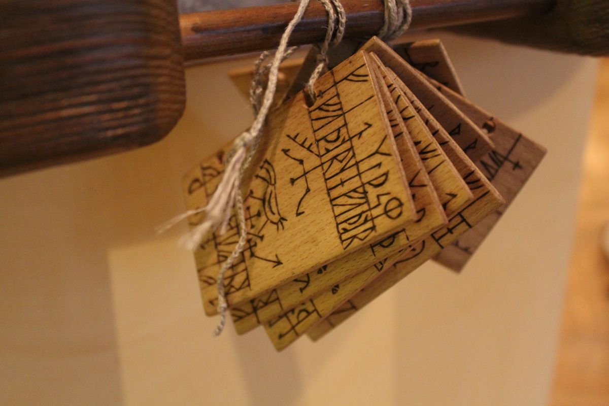 Kadangi kuršiai buvo vikingai, pirmiausiai sukūriau aiškiai išsiskiriantį ir savotiška vikingų kultūra alsuojantį užrašą. Bet tai nėra skandinaviškas akcentas, kaip gali atrodyti iš pirmo žvilgsnio.
