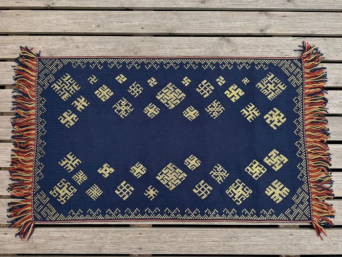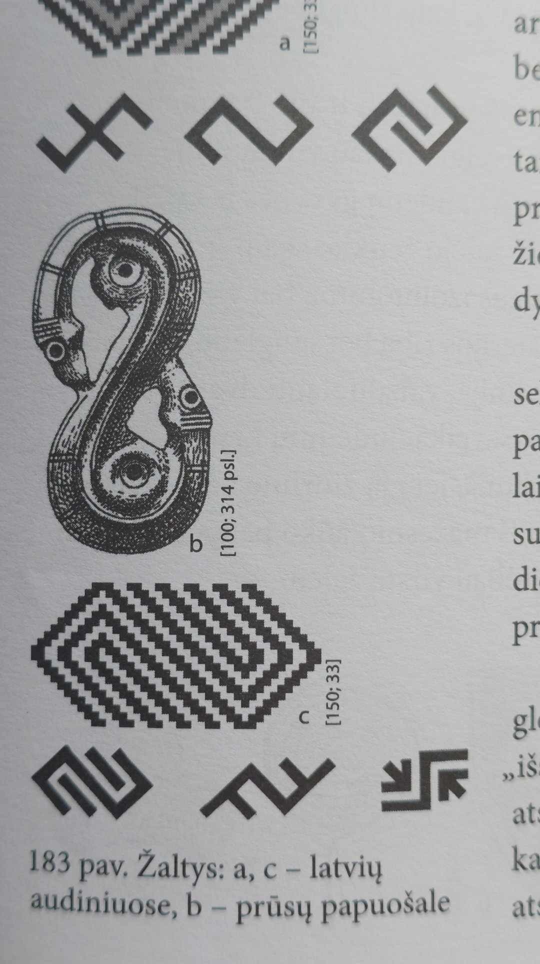 Na, o galinėje dalyje panaudota viena iš baltiškos svastikos – Saulės, ugnies, Perkūno ženklo – variacijų.