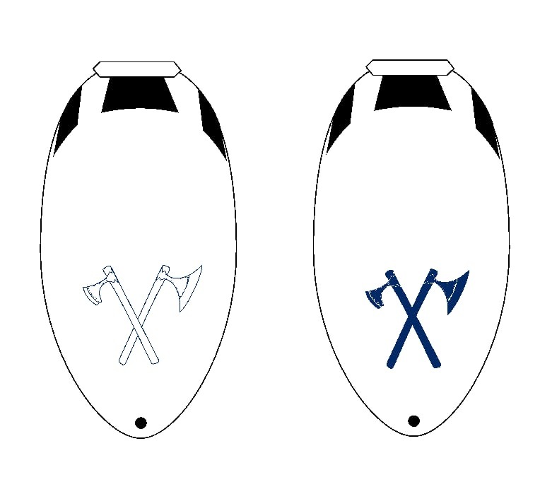 Valties priekyje – du sukryžiuoti, stilizuoti skirtingų tipų kovos kirviai, nupiešti pagal realius X-XI a. radinius iš kuršių Laivių (kaip simboliška) kapinyno Kretingos rajone.