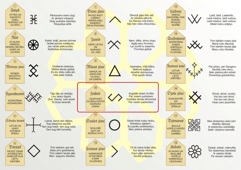 Idant nepritrūktų jėgų ir kovingumo. Išanalizavome garsiąją XIII a. latgalių skarą (lv. Stāmerienas villaine) su gausybe žalvarinių žiedelių, kurie suformavo dešimtis skirtingų svastikų.