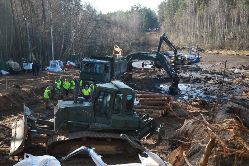 „Šiuo metu vyksta evakuacijos tanko ištraukimas iš pelkės. Už manęs dirba technika, kuri lygina kelią privažiavimui, iškasinėjamas gruntas ir bandoma pasiekti šarvuočio buvimo vietą.“