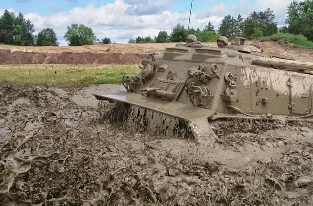 Pirmadienio vakarą pavyko iš pelkės ištraukti nuskendusią JAV kariuomenės šarvuotąją transporto priemonę.