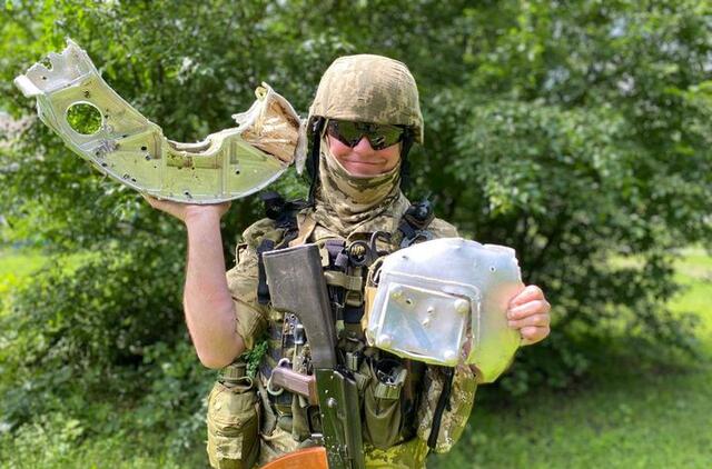 Nuotraukoje: ukrainiečių karys, kulkosvaidžiu „nuėmęs“ ordos paleistą raketą.