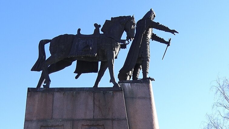 Dar yra didysis kunigaikštis Gediminas, Katedros aikštėje stovintis šalia į mulą dydžiu panašaus arklio ir nuolankiai kažkam kardą tiesiantis užuot ryžtingai juo mojavęs ant žirgo, lyg nebūtų Lietuva jo laikais sustiprėjusi ir išsiplėtusi.