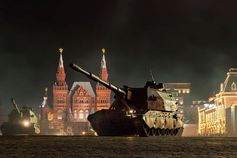 Raudonojoje aikštėje ("kruvinojoje"?) šiandien vyksta jėgos demonstravimas: kaip jau įprasta, važiuos tankai, bus velkamos raketos, skraidys lėktuvai, bus baubiama "ura!", demonstruojamas naikinimo potencialas ir skleidžiamas Aukso ordos laikų mentaliteto suformuotas baimės kultas (čtoby vsie vokrug drožali).