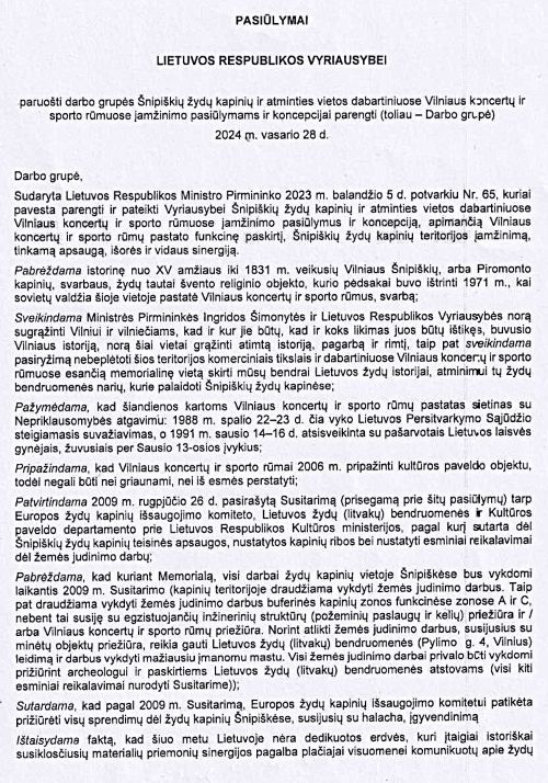 Jų pavertimą prieš 200 metų parduotų kapinių „memorialu“ premjerė grindė nenumeruotu „ministrų pasitarimo protokoliniu įrašu“, kuris ir labai norint nenaikina Vyriausybės nutarimo.