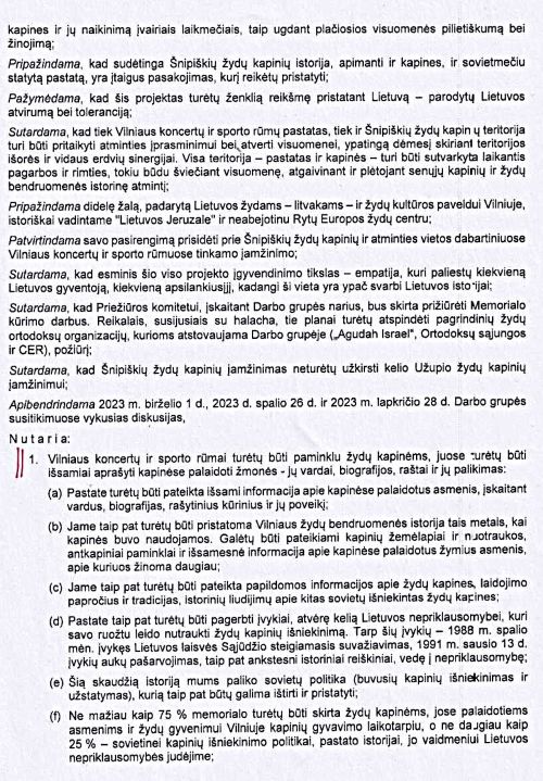 Mes visi lygūs ir dirbame Lietuvai. Puikiame Sporto rūmų atgaivinimo projekte, kurį parengė arch. Sigitas Kuncevičius, 300 kvadratinių metrų skirti ir čia prieš 200 metų buvusioms žydų kapinėms.