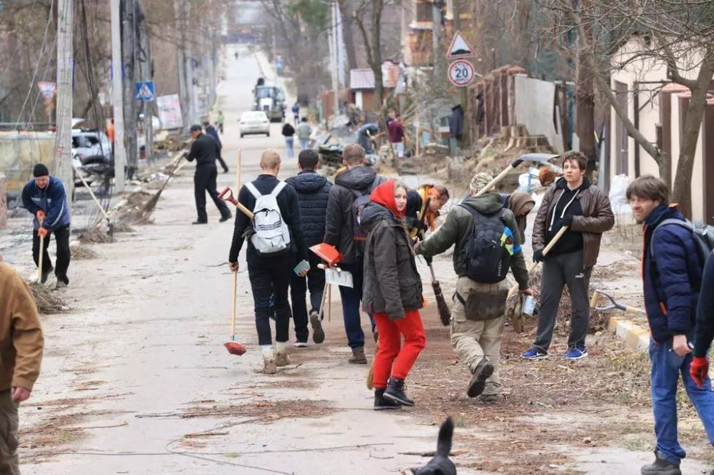 08:03 Civiliai savanoriai pradėjo Irpinio valymo darbus. Pranešama, kad nuolaužos išvalytos maždaug penktadalyje miesto gatvių.
