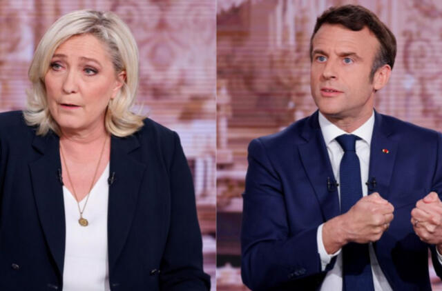 Artėjant Prancūzijos prezidento rinkimams atotrūkis tarp E. Macrono ir M. Le Pen toliau mažėja