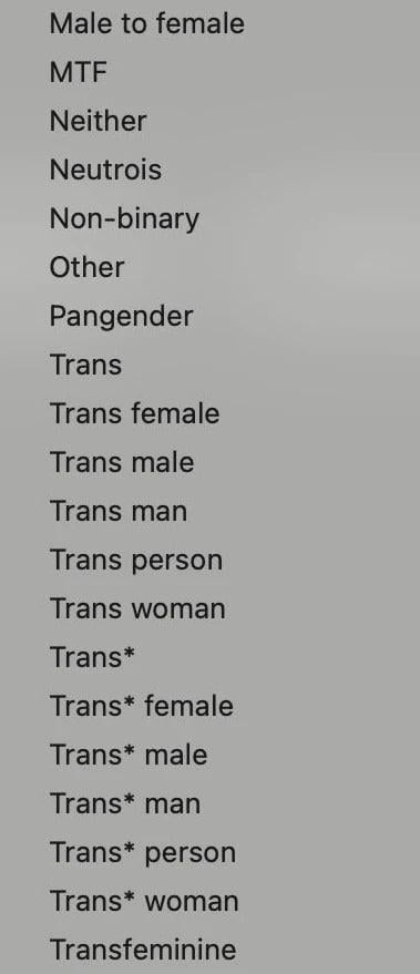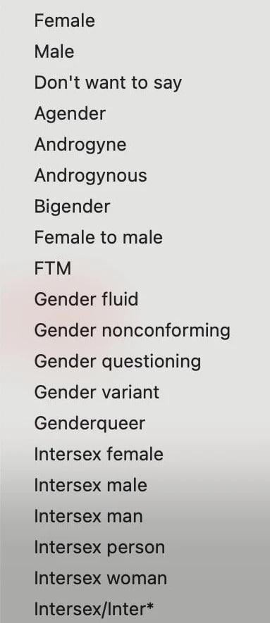 Pirmieji trys variantai gana įprasti - „vyras“, „moteris“, „nenoriu pasakyti“.