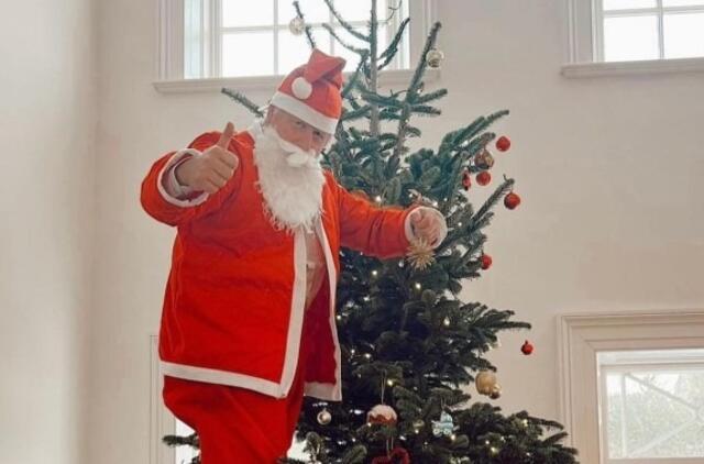 Borisas Johnsonas, persirengęs Kalėdų seneliu, papuošė Kalėdų eglutę