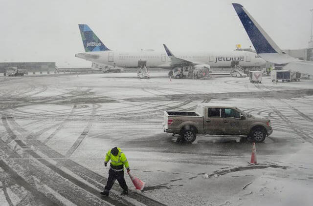 „Venkite nereikalingų kelionių. Jei turite keliauti, naudokitės viešuoju transportu“, – perspėjo vietos institucijos. Meteorologai prognozavo prisnigsiant 10–20 cm bei iki 64km/h vėjo gūsius.