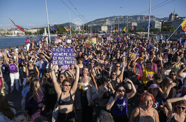 Dešimtys tūkstančių moterų Šveicarijoje išėjo į gatves, reikalaudamos lygybės