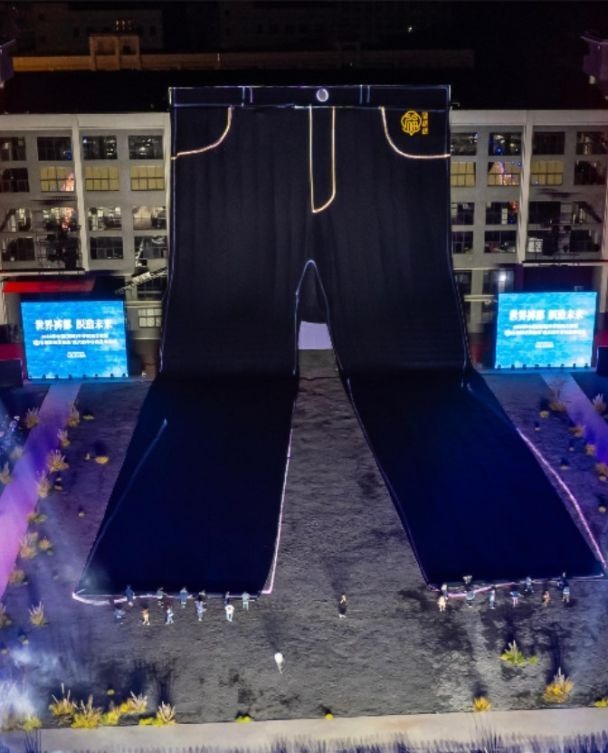 Didžiausi pasaulyje džinsai: drabužio, kuris yra aukštesnis už žinomą Europos pastatą, nuotraukos ir ilgis