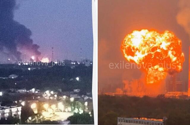 Dronai užpuolė Rusiją: gaisrai naftos perdirbimo gamykloje ir radijo gamykloje (vaizdo įrašas)