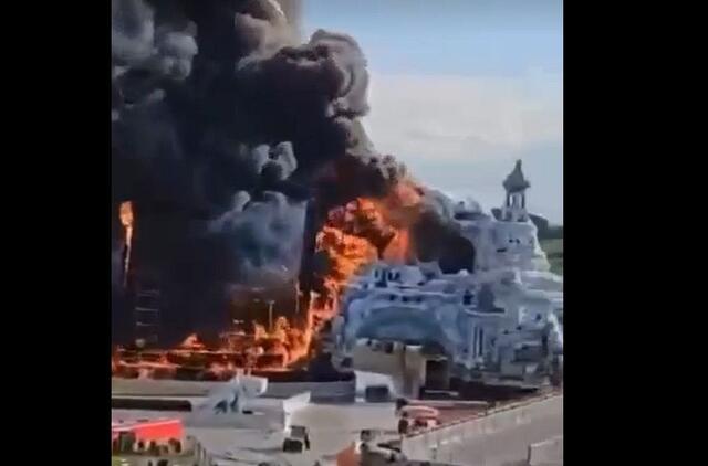 Socialiniuose tinkluose paskelbtame vaizdo įraše matyti, kaip liepsnos apėmė sudėtingą scenos konstrukciją.