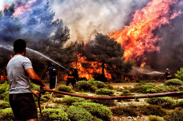 Graikijos ugniagesiai ir toliau kovoja su gaisrais: trys dideli gaisrų frontai siaučia turistinėse Rodo, Korfu ir Eubojos salose, dar keli kiti gaisrai aktyvūs kitur šalyje.