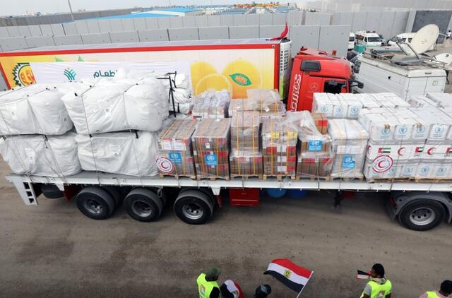 Sunkvežimiai, pasak agentūros AFP korespondento, iš Egipto kirto Rafos pasienio perėjimo punktą. Tai šiuo metu yra vienintelė prieiga prie palestiniečių teritorijos, kuria gali būti gabenamos pagalbos prekės.