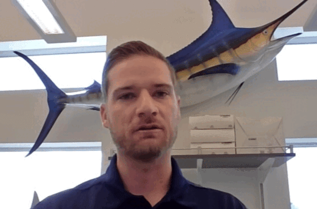 Naujajame vaizdo įraše, darytame pirmuoju asmeniu, matyti, kaip 40 kg sverianti burinė žuvis greitai išplaukia į paviršių, įveikia 60 metrų aukštį, kad pasiektų nedidelį tuną.