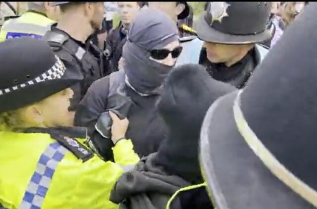Policijos pareigūnų, kurių daugelis dėvėjo juodas kaukes, eilė turėjo atskirti besivaržančias grupes.