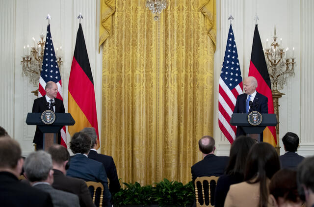 „Nord Stream 2“ dujotiekiu, apeinant Ukrainą, rusiškos dujos turėtų tekėti į Vokietiją. Jungtinėse Valstijose jau daug metų skamba kritika projektui, kuri nuo Ukrainos krizės eskalacijos dar labiau paaštrėjo. Erzelį kelia ir Berlyno atsisakymas tiekti Ukrainai ginklų. Kai kurios Aljanso partnerės kaltina O. Scholzą Ukrainos krizėje per mažai spaudžiant Rusiją. Ir Vašingtone kilo abejonių, ar rimtu atveju būtų galima pasikliauti Vokietija.