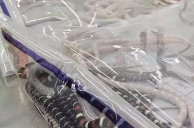Kinijoje sulaikytas vyras, kelnėse gabenęs 100 gyvų gyvačių kontrabandą