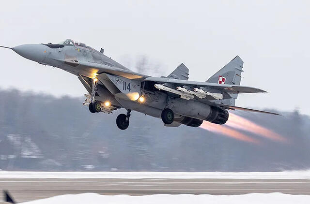 Lenkijos naikintuvas MiG-29 skrisdamas pametė degalų baką, žmonės nenukentėjo