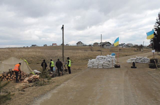 Kirtus Ukrainos sieną ties Peremyšliu ir vykstant į už 100 km esantį Lvovą barikadas tenka matyti kas kelis kilometrus.