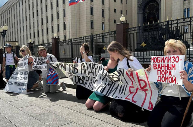 Maskvoje moterys prie gynybos ministerijos surengė protestą prieš šaukimą į kariuomenę