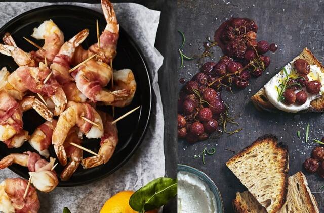 Rimi“ siūlo pasigaminti lengvų ir originalių užkandžių Naujųjų metų stalui: orkaitėje skrudintų vynuogių su rozmarinu ir krevečių su šonine. Šis elegantiškas užkandis kilęs iš Japonijos, kur vietoje krevečių kartais naudojamos ir vištienos kepenėlės.