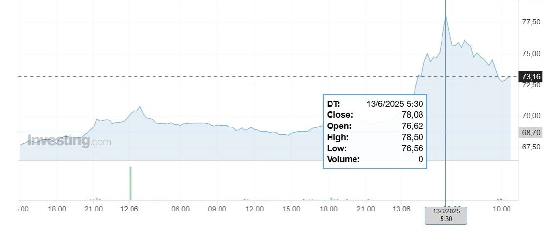 Po Izraelio smūgio Iranui staigiai išaugo pasaulinės naftos kainos nuotrauka / Ekrano kopija: investing.com