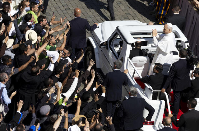 69 metų Katalikų bažnyčios vadovas mėgino pagauti iš minios į jį sviestą daiktą.