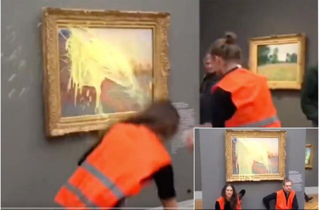 Du aktyvistai iš grupės „Paskutinė karta“ (Last Generation), kuri ragina Vokietijos vyriausybę imtis drastiškų veiksmų klimatui apsaugoti ir nustoti naudoti iškastinį kurą, priėjo prie C. Monet paveikslo „Les Meules“ (Šieno kupetos) Potsdamo „Barberini“ muziejuje ir apliejo paveikslą ir jo auksinį rėmą tiršta mase.