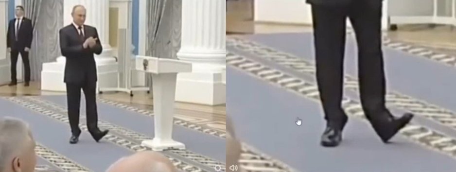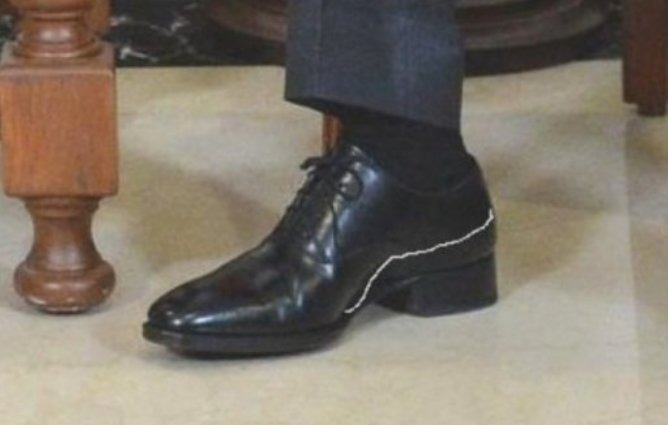 Internete gausu vaizdinės medžiagos, kurioje matyti speciali V. Putino avalynė su paslėptu kulniuku ar didele pado platforma, tai pastebėti galima ir plika akimi.