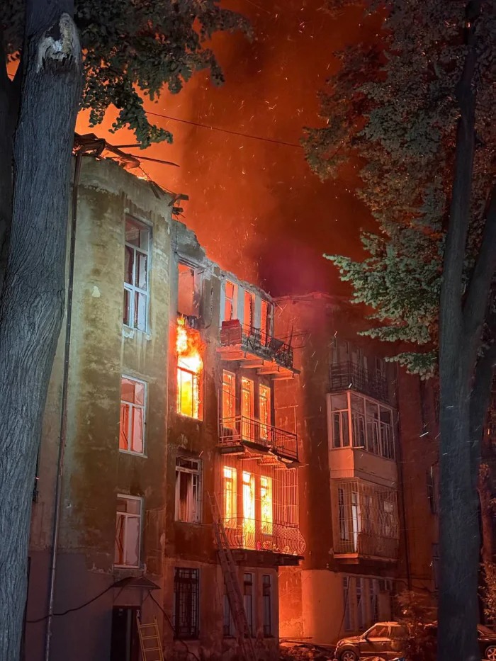 Gaisrinės gelbėjimo tarnybos patikslino, kad dėl Rusijos apšaudymo skirtingose vietose kilo daugiau nei 10 gaisrų, didžiausias – keturių aukštų gyvenamajame name.